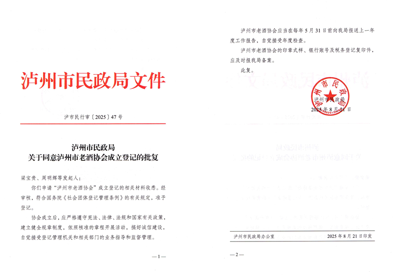 泸州市老酒协会是经泸州市民政局批准成立,泸州市酒业发展促进局主管的非营利性社会组织。会员由泸州市范围内从事老酒酿造、经销、收藏、科教、装备及相关服务的企事业单位、生产企业、社会团体、媒体及个人自愿结成,于2025年8月26日正式登记成立。作为泸州本地专注于老酒产业发展与文化传承的专业组织,协会承担着连接政府、酒类企业与老酒爱好者的桥梁纽带作用,致力于推动泸州老酒领域规范化、高质量发展,助力打造泸州产区老酒特色品牌。